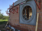 Der erste Ziegelkreis ist nun vollendet. Es ist schön, den ersten Kreis des Stupas - mit allen rundum den Blick ins Land eröffnenden Fensteraussparungen - praktisch vollendet zu sehen, im Rohbau ist der Plan, die Innenwände mit Lehm zu verputzen und würde die liebevolle, gebende Kraft der Erde außen und innen harmonisch verbinden.