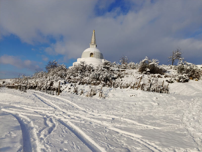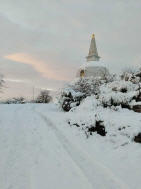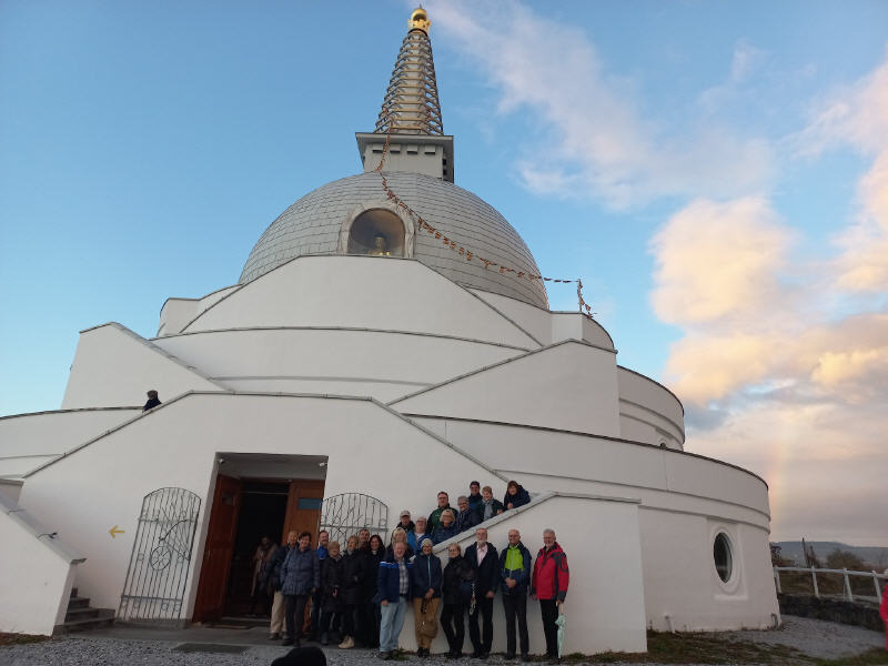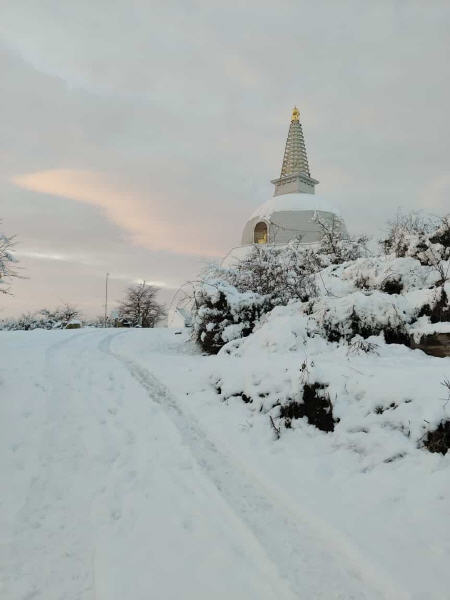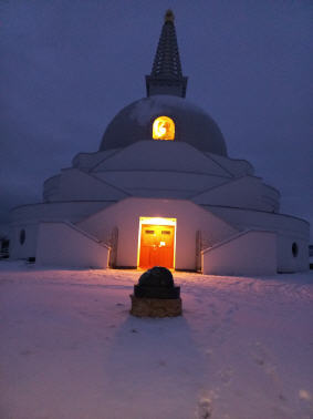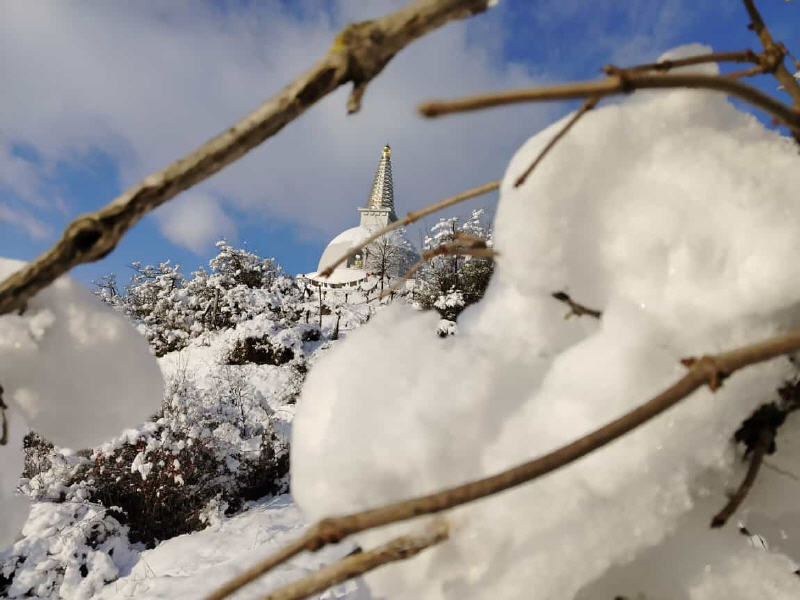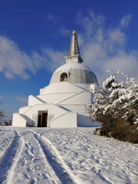 Da der Stupa dem Frieden gewidmet ist, möchte ich die Besucher einladen, darüber nachzudenken, wie sie zu einer friedlicheren Welt beitragen können. Frieden entsteht durch Taten, nicht nur durch Gebete. Nur wenn wir Mitgefühl und inneren Frieden kultivieren, können wir Frieden in der Welt verbreiten. Innerer Friede führt zu einem friedvollen Individuum, und dieses friedvolle Individuum kann eine friedvolle Familie aufbauen, dann eine friedvolle Gemeinschaft, die zu einer friedvollen Welt führt.