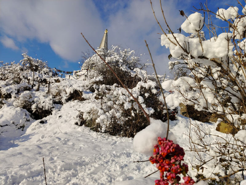 Dazu wurden von Gangteng Tulku Haare von Guru Rinpoche Padmasambhava für den Stupa gespendet