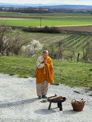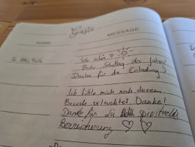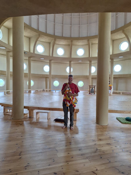 Es war für mich ein stimmiger "Wegweiser", den eigenen Seelenton zu erfahren, zu erkennen, zu spüren. Die Reinheit der Absicht, mit der das Klavierspiel dargeboten wurde, war für mich KLAR und fein zu erleben. Vom Zentrum des Stupa ,auf dem Stranger seine Wellen, Klänge, ausströmen ließ wurde ein "heiliger Raum" ,ein Klangraum, der ALLE Anwesenden erfasste, gebildet.