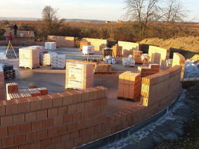 Der erste Ziegelkreis ist nun vollendet. Es ist schön, den ersten Kreis des Stupas - mit allen rundum den Blick ins Land eröffnenden Fensteraussparungen - praktisch vollendet zu sehen, im Rohbau ist der Plan, die Innenwände mit Lehm zu verputzen und würde die liebevolle, gebende Kraft der Erde außen und innen harmonisch verbinden.